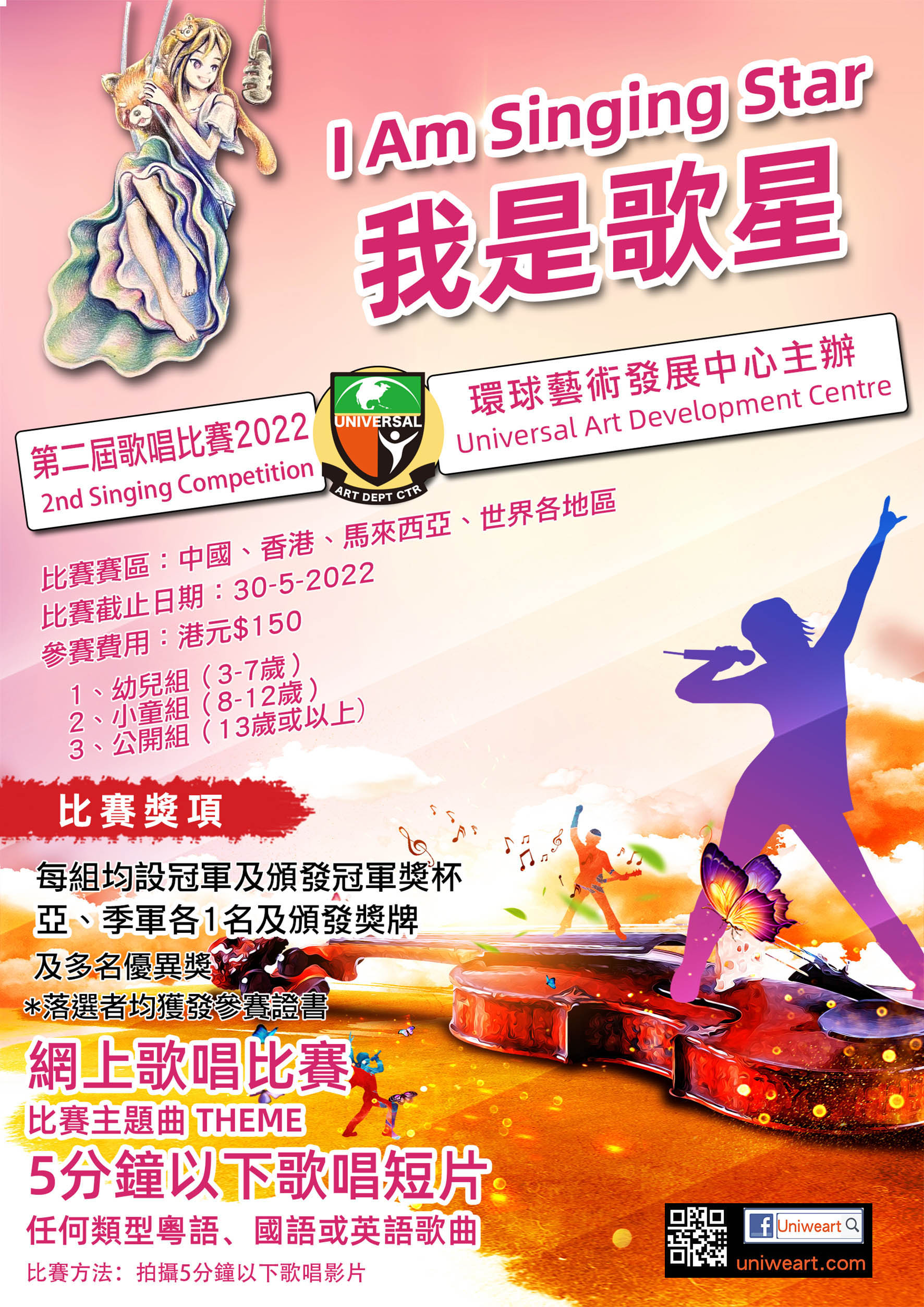 (網上歌唱比賽) 拍攝 5分鐘以下歌唱短片任何類型粵語、國語或英語歌曲影片